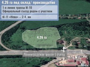 4.26 га промназначения на 1-й линии М-10 (Ленинградское шоссе) для логистического или производственного комплекса.
