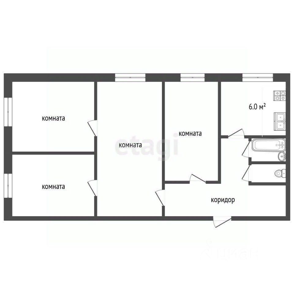 Продается просторная четырехкомнатная квартира общей площадью 60,9 кв.м в тихом и уютном дворе, удаленном от проезжей части.