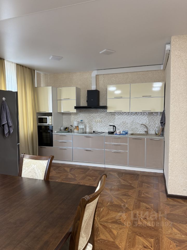 В квартире выполнен качественный евроремонт, продуманный до мелочей. Обстановка современная и стильная. Встроенная мебель и техника остаются новым владельцам, поэтому можно сразу заехать и жить. Просторная кухня позволяет воплощать кулинарные мечты. Санузел совмещенный, выполнен в светлых тонах, что визуально увеличивает пространство.