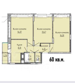 Комнаты- 16.28+14,07+13,47 кв. м.