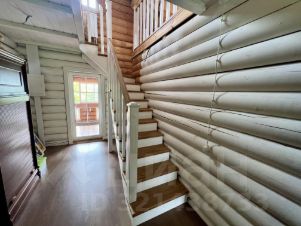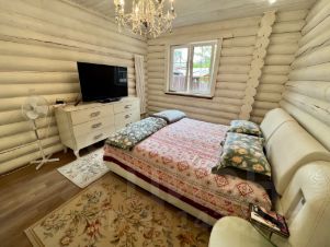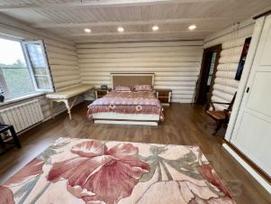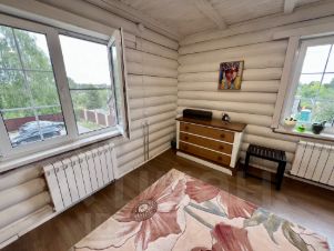 Дом построен на прочном бетонном фундаменте из цилиндрического бруса;